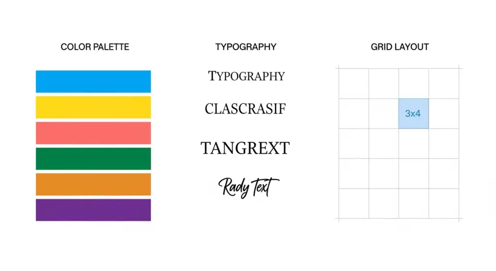 - Grid e margens: regras de espaçamento para manter harmonia.